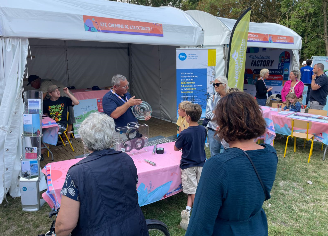 Cet évènement a été l’occasion pour les équipes projet, mobilisées sur le stand du groupe EDF dédié aux outils de production d’électricité bas carbone du groupe sur le Dunkerquois, et sur le stand de RTE, gestionnaire du réseau de transport d’électricité accompagnant la décarbonation et la réindustrialisation des industriels du Dunkerquois, de recueillir les questions et les avis du public sur le projet et plus largement sur la transition énergétique et les énergies renouvelables.